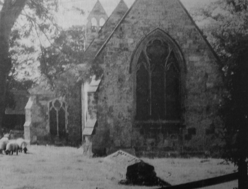 Margaret Elsworth, station masters' daughter and Mrs. Jose Moore, teacher at Warthill, at S.o.F. Tennis Club circa 1940/50s. The new EN TOUr CAs court 1949 Entourcas is believed to be the name of the material used to surface the court. Location in the village not known. Do you recognise the building behind of the one in the distance? |